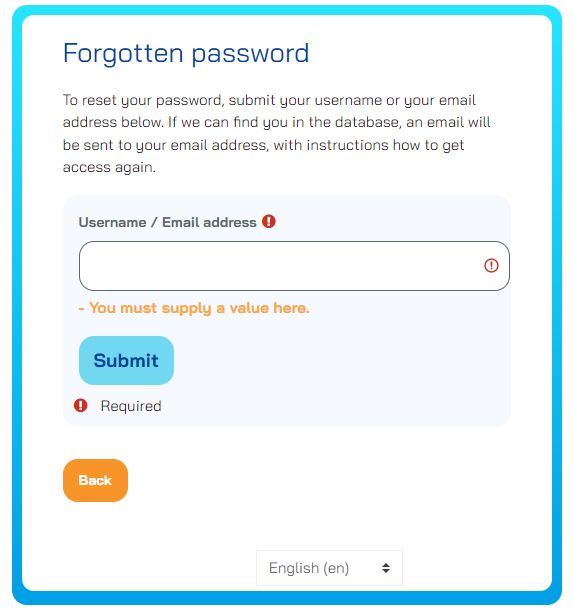 There is also a link available on this screen that allows you to reset your password. After clicking, a form will appear allowing you to reset your password.